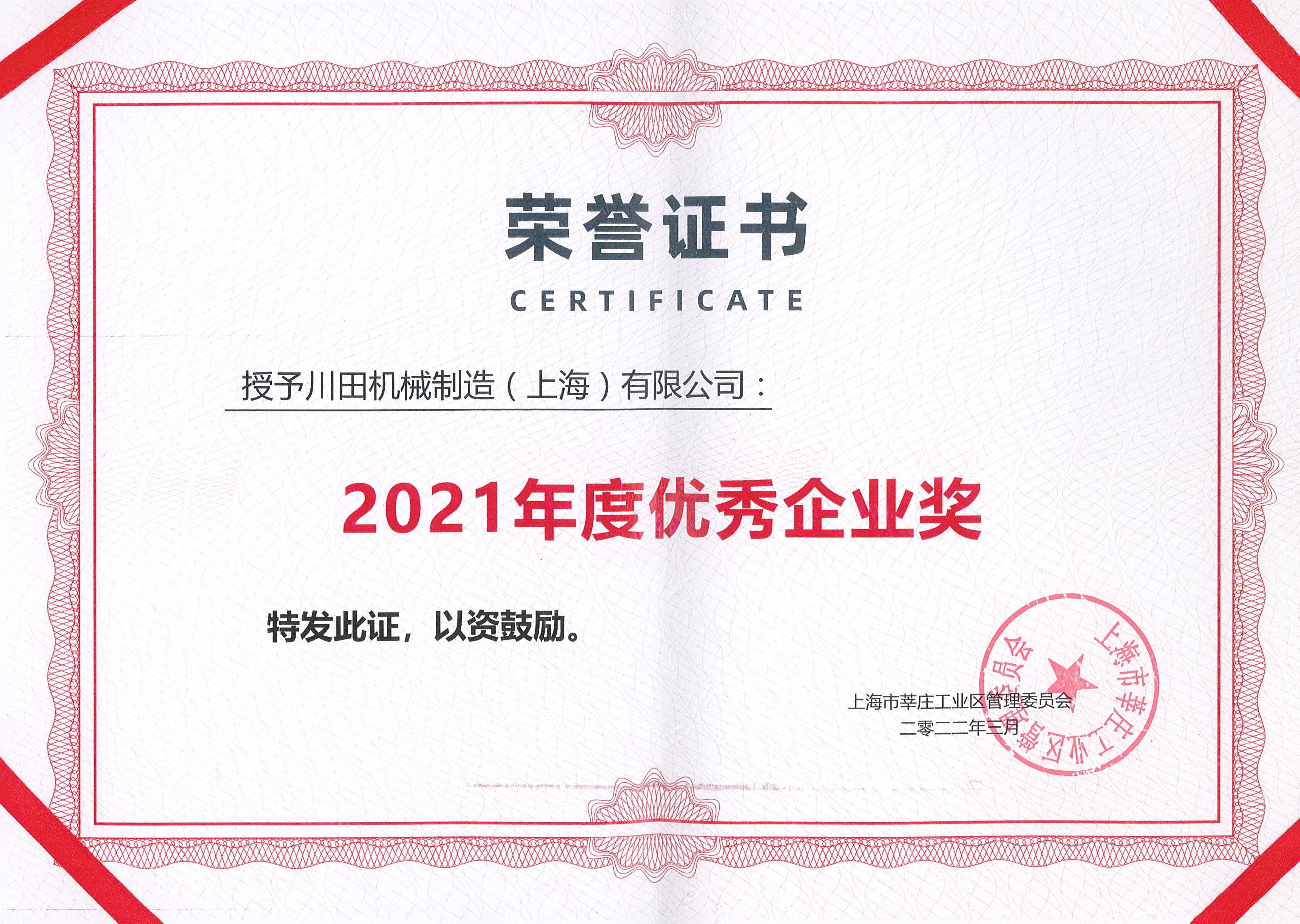 2021 莘莊工業(yè)區(qū) 優(yōu)秀企業(yè)獎(jiǎng)證書