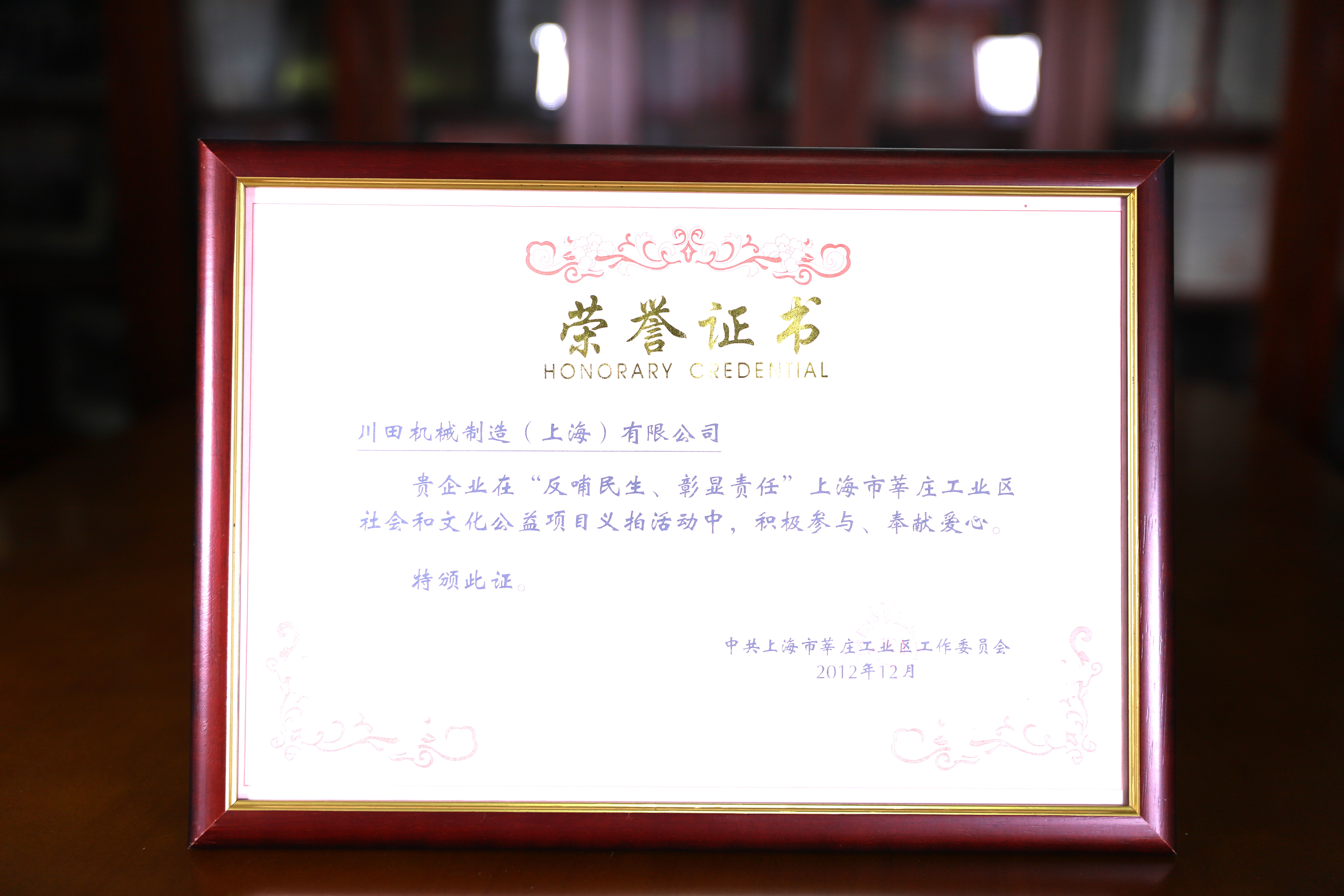 2012 莘莊工業(yè)區(qū)社會(huì)和文化公益項(xiàng)目榮譽(yù)證書(shū)